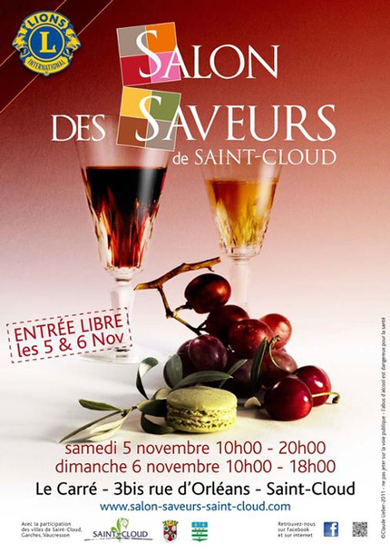 Pour sa seconde édition, le Lions Club de Saint-Cloud - Garches - Vaucresson organise, avec le concours des mairies des 3 communes, un Salon des Saveurs qui réunira environ 35 exposants de vins, produits du terroirs et arts de la table.