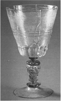 A la fin du XVIème siècle, dans les centres verriers des Pays-Bas méridionaux, nous trouvons une importante production de verres munis d’un balustre à mufles de lions. Les têtes de lions sont souvent associées à des rosaces, des cartouches, des grappes de fruits ou des fleurs de lys.