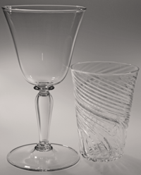 Ces verres sont inspirés de modèles de la fin du XVIème siècle produits à Venise ou dans des verreries travaillant à la façon de Venise.