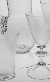 Collection de verres à jambe, à la façon de Venise. La jambe est constituée d'un balustre creux séparé de la coupe par un disque. La coupe est décorée avec des côtes fines.